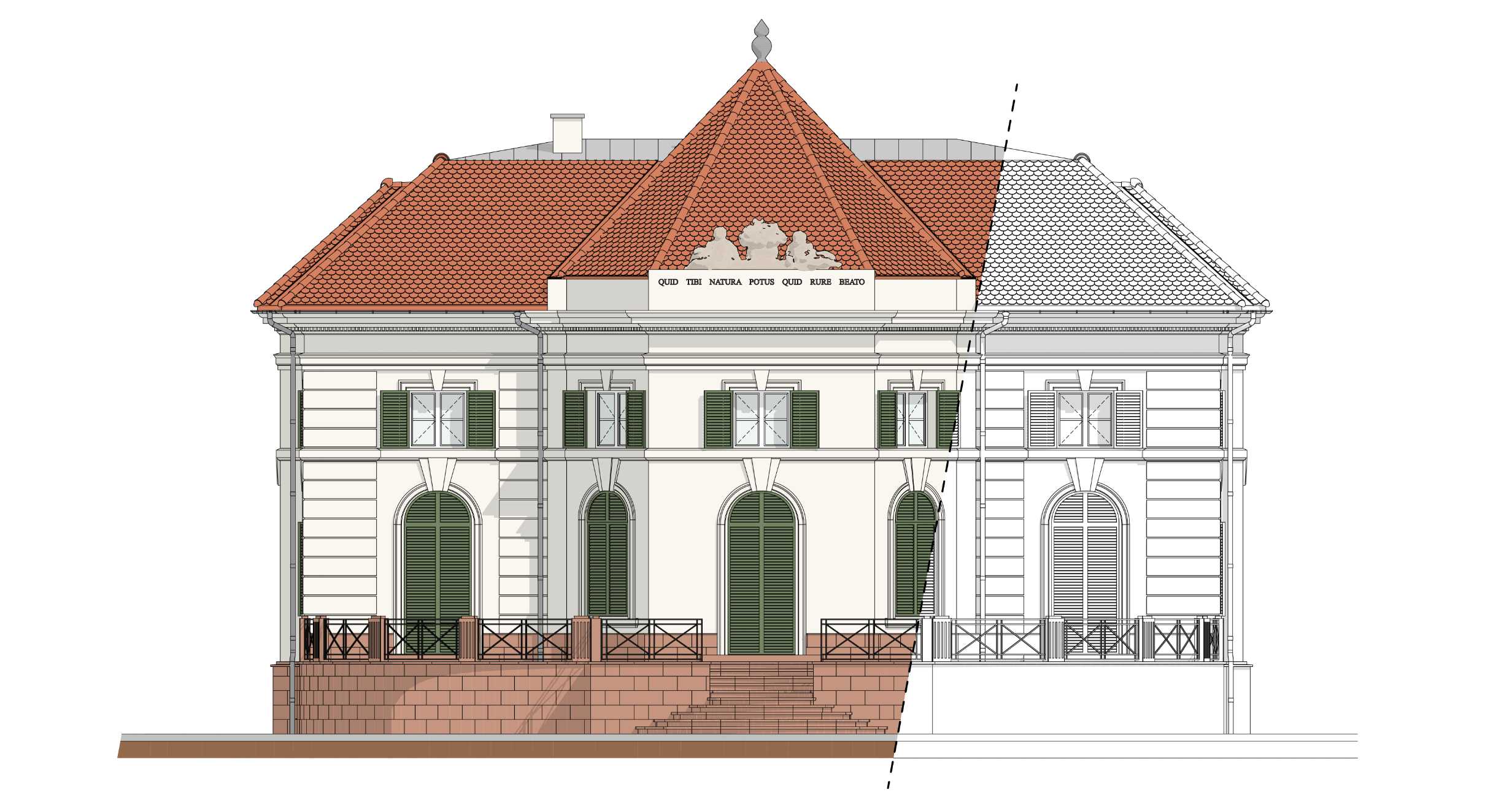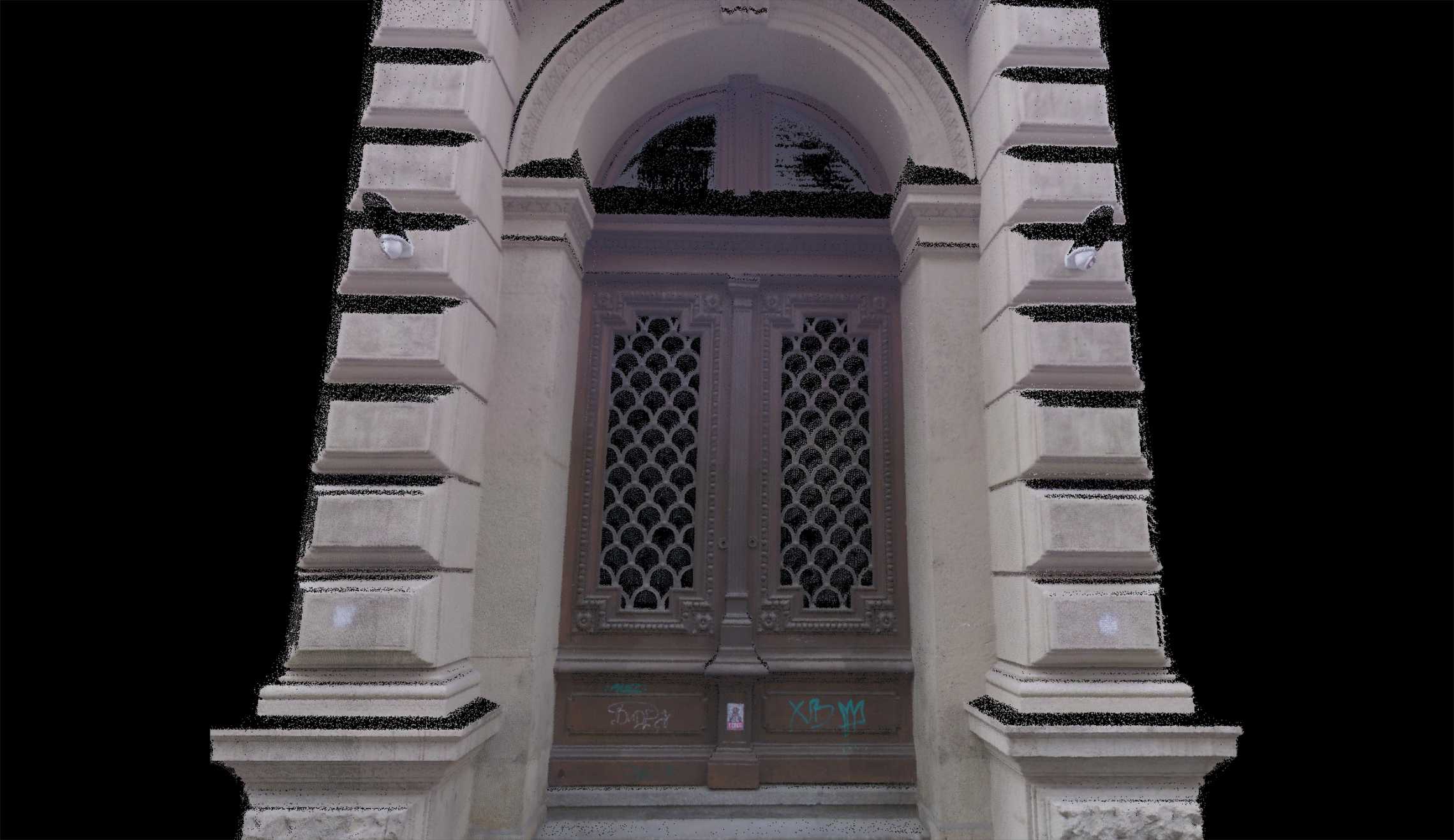 Az alábbi képen egy műemléki épület homlokzatáról készült pontfelhő látható. A tervezőprogramba való importálás után a homlokzati díszítőelemek profiljai könnyedén modellezhetőek. A valóságnak megfelelő arányok és méretek kerülnek a tervekre.