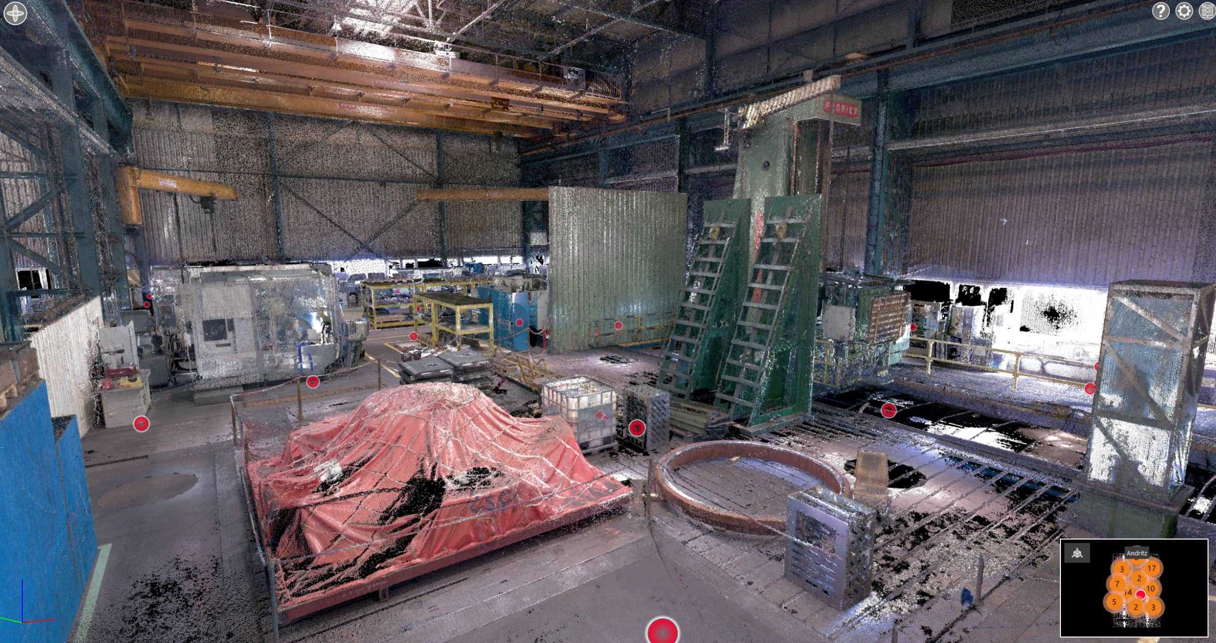 Az ingyenes megtekintő programban pontfelhő és gömbpanoráma nézet is választható. Mindkét nézetben bármely két pont között lehet méreteket venni, így közvetlenül a fotón is mérhetünk. A pontfelhőről bárhol felvehetőek vízszintes vagy függőleges metszek, készíthetőek ortogonális aránytartó képek.
